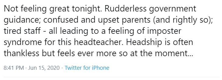 Many stories told to me in confidence verify that headship can lead to burnout – and that’s in ordinary times.